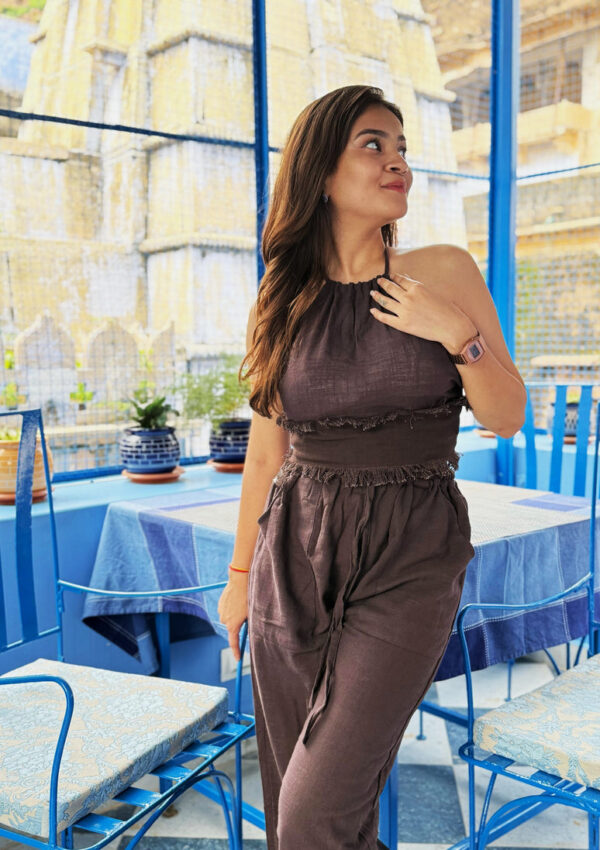 $37.00Elevate your casual-chic wardrobe with this elegant cacao brown halter neck cotton top, thoughtfully crafted for comfort and effortless style. Made from breathable, lightweight pure cotton, this top is perfect for warm days and laid-back outings.