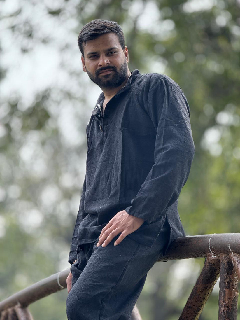 Experience timeless comfort with our classic black Khadi Cotton Kurta, crafted from 100% handspun and handwoven khadi cotton. This piece celebrates simplicity through its breathable texture, relaxed silhouette, and natural fabric feel — ideal for both everyday wear and cultural occasions.