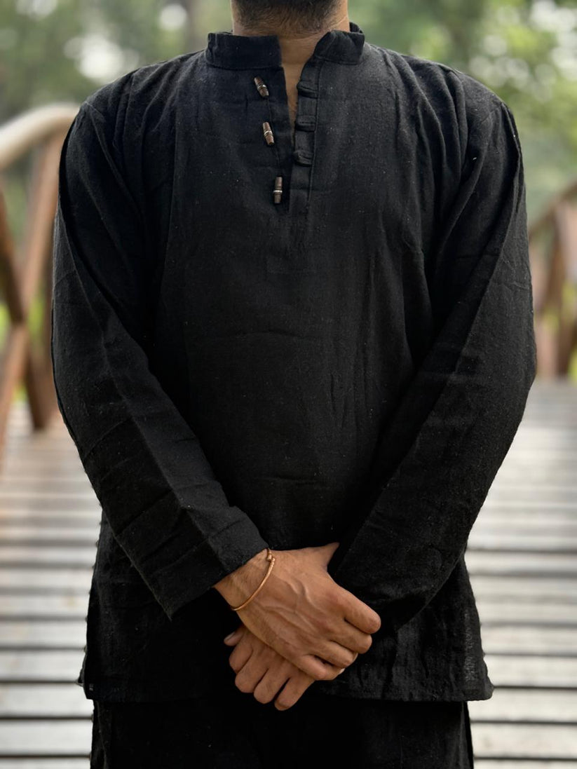 Classic Black Khadi Cotton Kurta