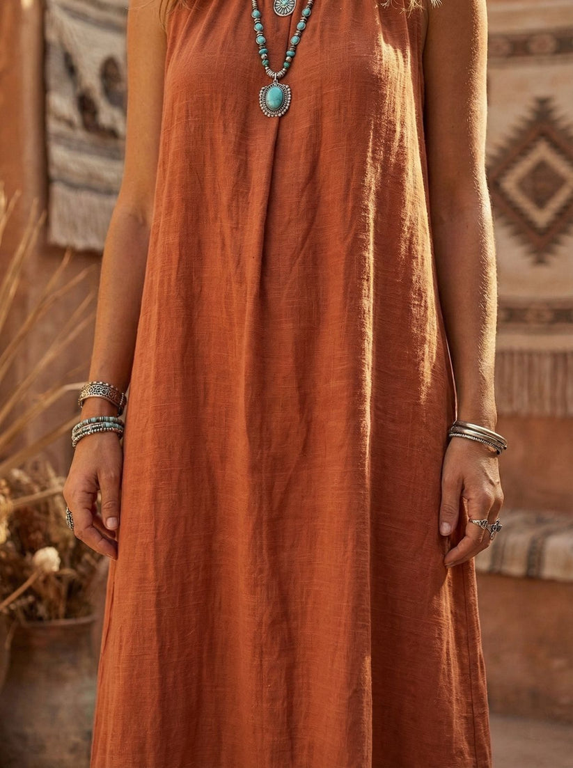 Be the first to review “Desert Amber Rust Linen Cotton Maxi Dress | Boho Flowy Summer Dress | Loose Comfortable Maxi”