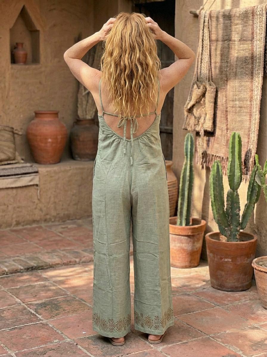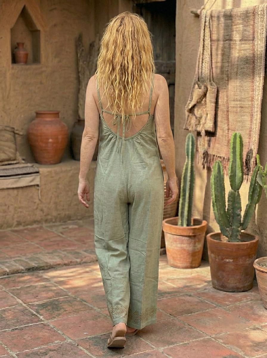 Be the first to review “Sage Green Linen Co-Ord Set | Handblock Print Wide Leg Jumpsuit | Boho Summer Outfit | Resort Wear”
