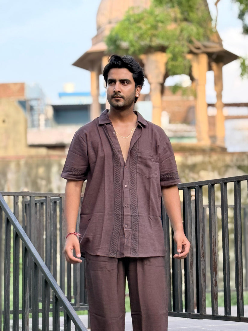Linen Cacao Shirt – Hand Block Printed Cotton